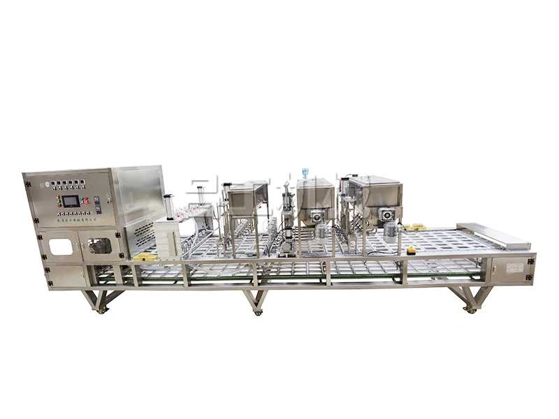 人工放杯,人工投料,自動(dòng)放片蓋,自動(dòng)封口,自動(dòng)出杯??筛鶕?jù)要求增加減功能。