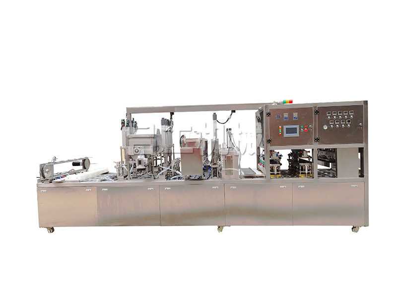 鋁箔碗裝灌裝包裝機(jī)適用于各種碗裝產(chǎn)品的包裝,能自動(dòng)落盒、充填水、充填物料、紫外線(xiàn)消菌、光電定位、兩次氣動(dòng)熱封、自動(dòng)剪切及整列出盒等功能。整機(jī)可采用編程邏輯控制器、氣動(dòng)控制元件、智能數(shù)顯溫度控制系統(tǒng),具有封口強(qiáng)度高,密封性好,故障率低等特點(diǎn),是企業(yè)自動(dòng)化生產(chǎn)的良好產(chǎn)品,按照客戶(hù)要求可以定做特殊規(guī)格的機(jī)器。